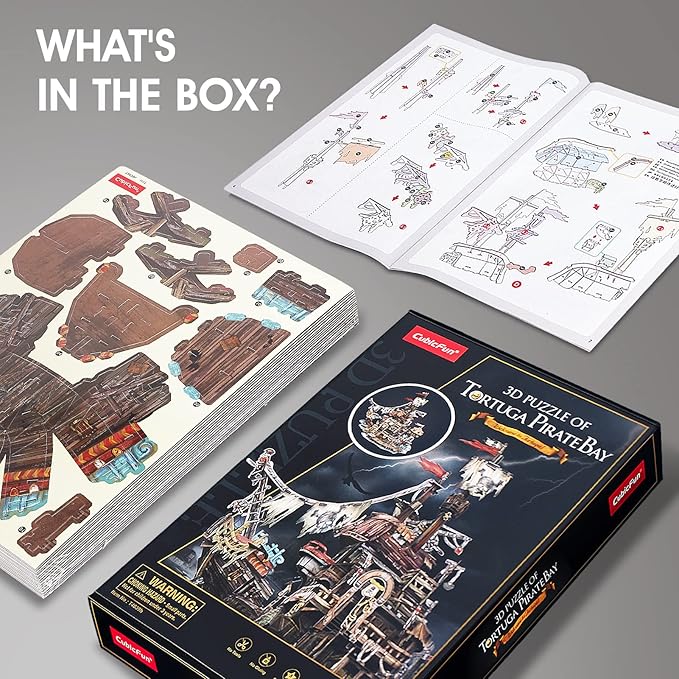 - Realistic Details Bring the Model to Life: Explore the intricate details of the captain’s cabin, tavern, jail cell, and hidden treasure. With decayed hulls, tattered sails, and fun accessories, this 3D pirate bay puzzle truly comes alive