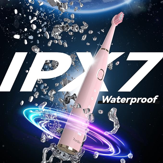 - IPX7 Waterproof and 2-Mins Timer Develop Healthy Tooth Brushing Habits: Built-in 2 minutes timer to ensure scientific brushing time, the sonic electric toothbrush pauses every 30 seconds to remind you to change the brushing area. And you can rinse it easily or use it in the shower with IPX7 waterproof.