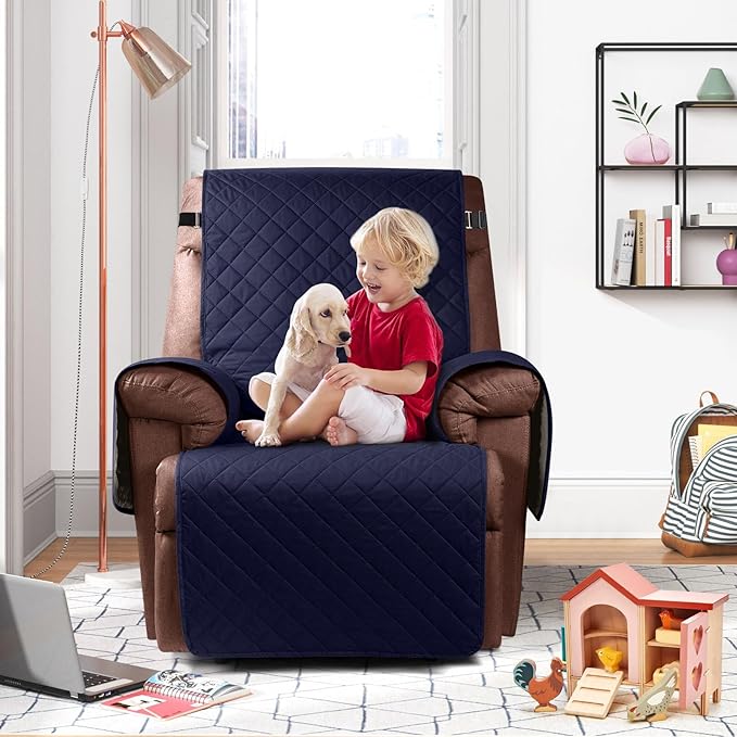 KinCam 100% Waterproof Recliner Chair Cover, Reclining Couch Covers for Pets, Dogs, Recliner Couch Slipcover Furniture Protector with Elastic Straps for Kids(23.6", Dark Blue)