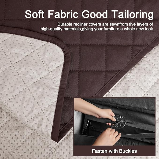- 100% Waterproof & Comfortable: (This Recliner Couch Cover is Patented) KinCam recliner chair cover is made of high quality 100% waterproof polyester, which inner layer is filled with durable fabric, feel very cool to touch, comfortable and durable