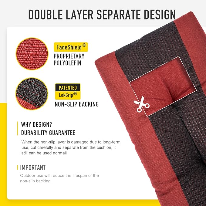 - 【 Double-layers Bottom Separate Design】In addition to the LokGrip non slip backing layer, also have peoprietary polyolefin protective layer inside, which effectively prevents damage to the foam filling due to friction. Even if the spider web shape bottom non slip layer is damaged due to long-term use, cut carefully and separate from it, the chair cushion also can still be used normal, double protective, make the chair cushion more durable.