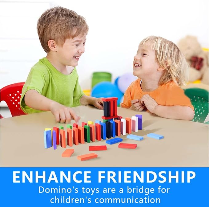 - Stacking dominoes can help children enhance hand-eye coordination, observation ability, and exercise finger flexibility. Super fun for your children! Arrange them one by one, and then push down the first one, they will fall continuously, and observe the chain effect of dominoes.