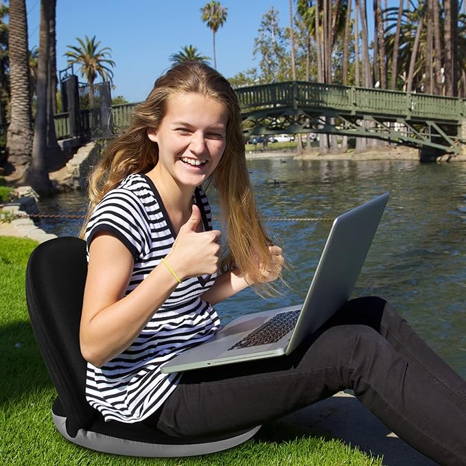 - Flex space comfy floor seat: 42-position/ 90°to 180° floor sitting easy to find the comfy angle, relieving backache and cervical pain. Arch back design and Round shape's humanization design make you feel more comfortable. 4.31lb net weight is a piece of cake even for kids to pick up.