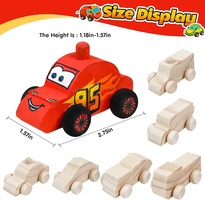 - Quality Material: These unfinished wood cars are made of quality wood, are smooth on the edge, and have no burrs, so you needn't worry about scratching. It is a good craft and painting kit for children, create your car with any color you want.