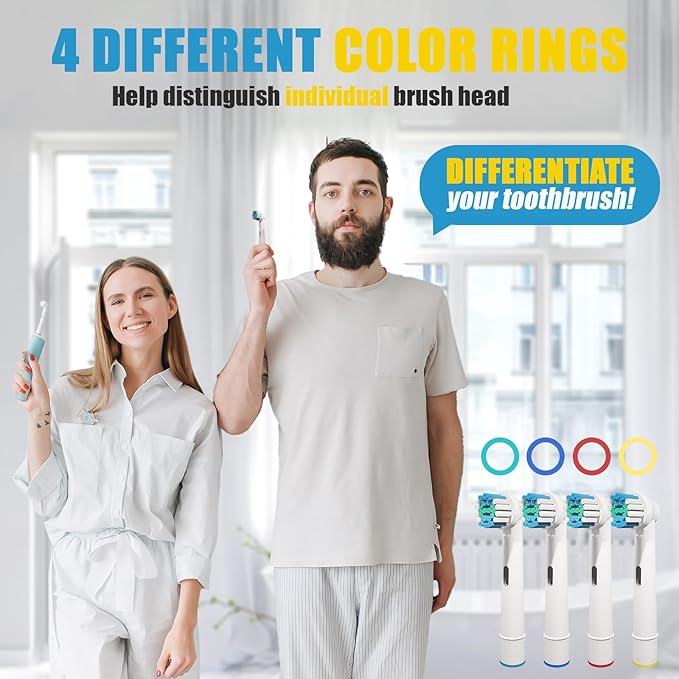 - Pack of 8 Replacement Brush Heads for Family Set & Value Purchase - Including 8 pcs affordable pack toothbrush heads so that you can save more and replace at any time. There are 4 color rings to distinguish them and allow you to pick up your own brush head so that you can share with your family.