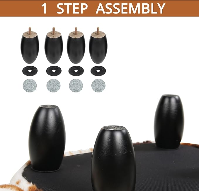 GIA Ottoman with Storage, Foot Stand and Wooden Legs, Shorthorn Dairy Cow, Brown and White