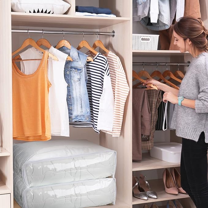 - Widely Applied: these plastic storage bags with zippers can be applied to store your clothes, fabrics, quilts, sheets, blankets, cosmetics, throw pillows, or other things you want to store, practical and space saving