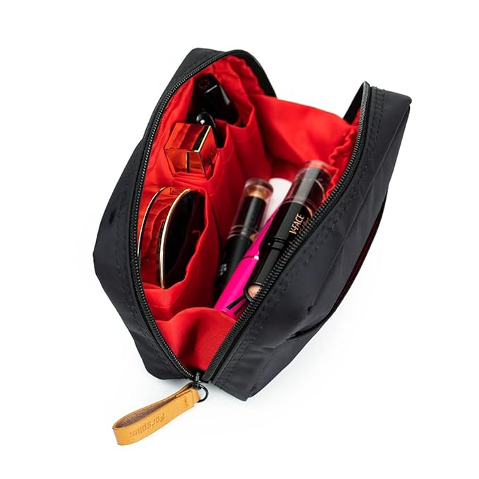 Hekyip Rectangular Beauty Bag, Small Travel Makeup Bag for Purse, Portable Waterproof Cosmetic Pouch for Ladies Women (Rectangular Inner Red)