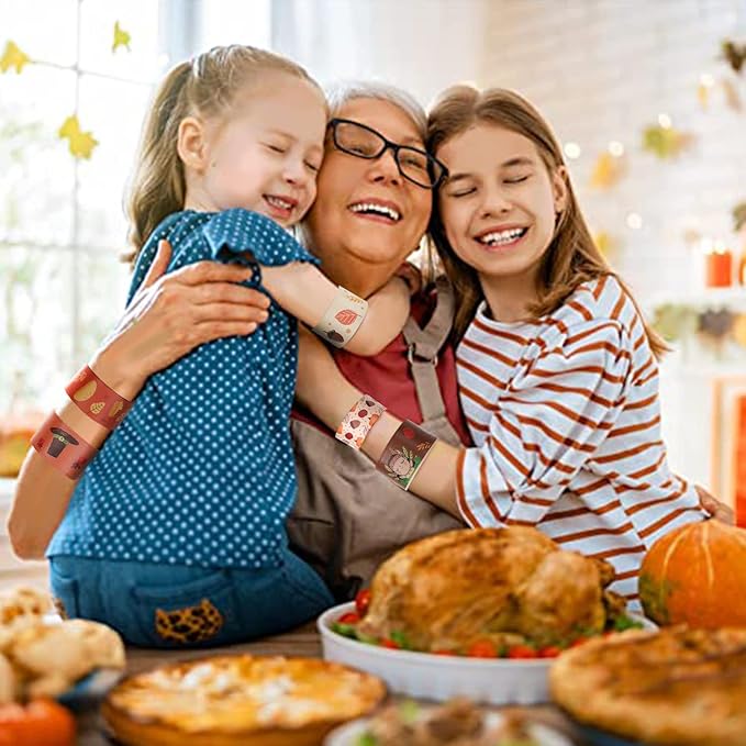 - 【Thanksgiving design】: The Slap bracelets are designed with Thanksgiving styles, including maple leaves, pumpkins, hazelnuts, turkeys, corn, etc., which are printed clearly, colorful and it’s funny to wear on hands, that would bring you with your families and friends funny Happy Thanksgiving and Harvest atmosphere.