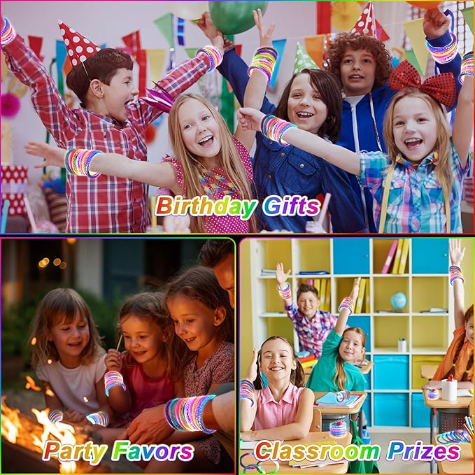- Let's Party:You can use these light up bracelet as night activities,birthday party,beach party,pool party,animal party,wedding,concerts,dancing party,bar,nightclub,camping,raves, stockings stuffers,school classroom Reward. Try to enjoy the joy of glow in the dark toys in more special occasions