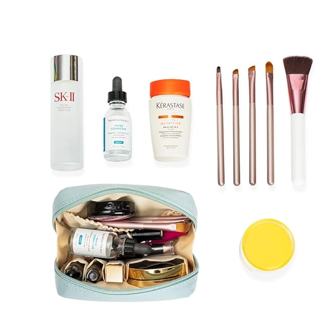 - Rectangular shape with Large Capacity: Convenient to carry your daily cosmetics, it can nearly storage for brushes, eyebrow pencils, mascara, lipstick, air cushion cream, eyeliner, blush and foundation. It can store all your beauty essentials.
