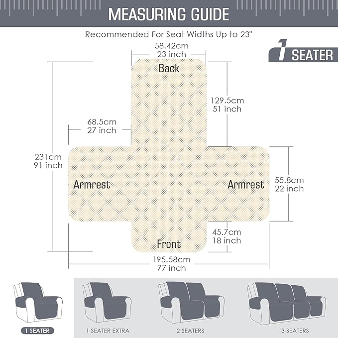 - 【DIMENSIONS GUIDE】 There are two sizes of sofa slipcovers available that will fit most family furniture. Small pet recliner covers fit a chair with a seat width of 23 in, see measurement guide in photos. NOTE: Please confirm the size before purchasing