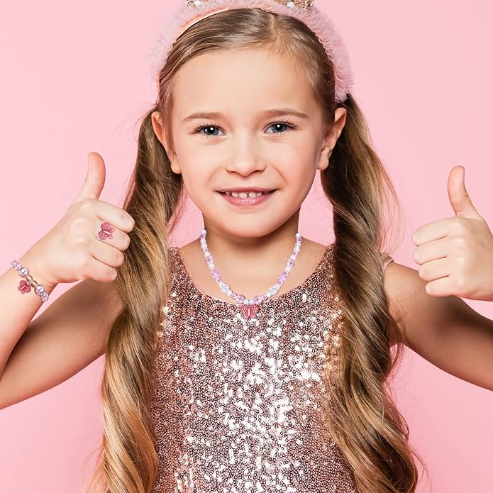 - Toddlers jewelry,Package Includes - 1* Butterfly Necklace for girls, 1* butterfly bracelet for girls, 1* Butterfly ring for girls.