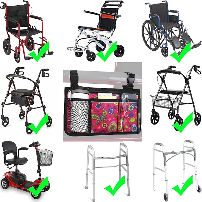 - ✔ Fit Most Wheelchairs or Walkers: Featuring adjustable fastener straps can be easily attached to most wheelchairs, walkers, rollators or mobility scooters.