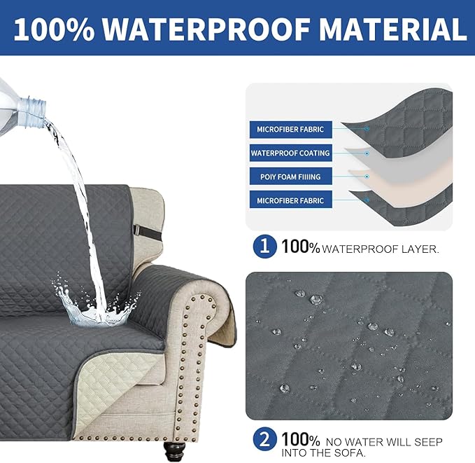 XINEAGE Loveseat Sofa Cover Waterproof Couch Covers for 2 Cushion Couch, Soft Washable Slipcover with Pockets & Non-Slip Elastic Straps, Thick Furniture Protector (Loveseat, Dark Grey)