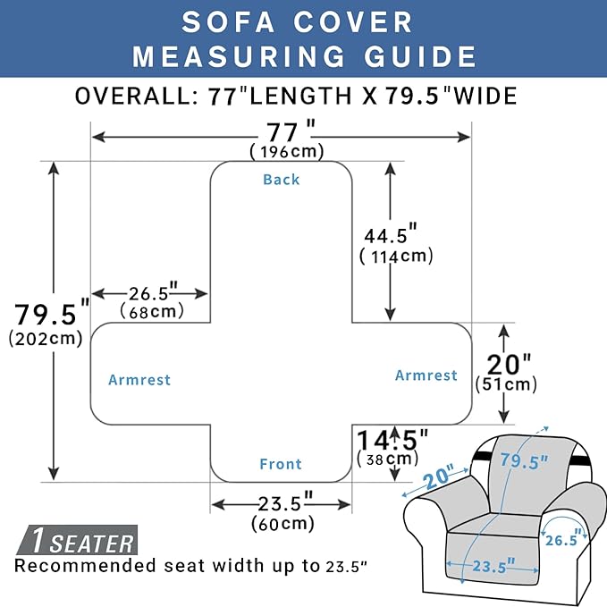 - 【Size & Installation】 CHAIR COVER 23.5″, LOVESEAT COVER 49″, SOFA COVER 69″, XL SOFA COVER 79″. Note: Please measure sofa seat area. The sixth picture in the product listing provides more specific slipcovers for sofas and chairs size information. Please refer to it before purchase. And Installation Guide of the furniture covers is also displayed, so easy that you can install the furniture slipcovers within 2 minutes, save your time and energy