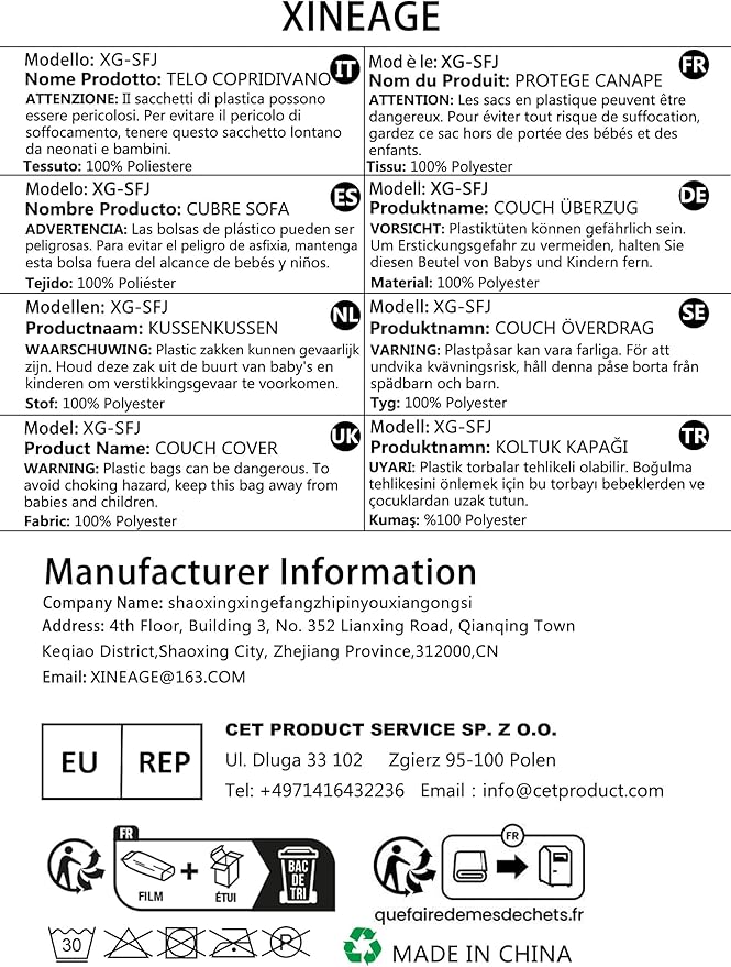- 【Maintenance Tips】Machine washable. Do not bleach, Can be ironed on low heat and Tumbled dry low temperature, Best wash temperature 77°F - 95°F (25°C-35°C). XINEAGE water hair proof couch slipcovers do not need frequent cleaning, just wipe with a damp cloth, easy to clean and maintain.