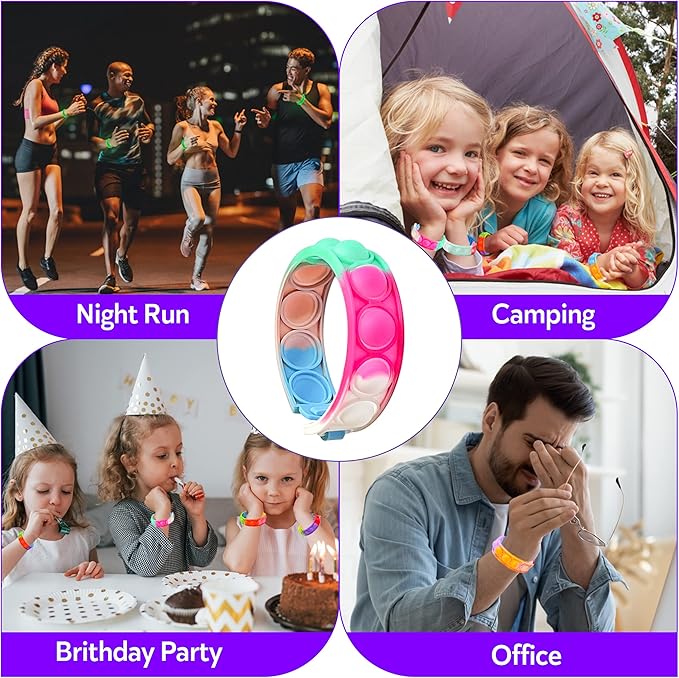 - 【Perfect Gift】— These Push bubble sensory toys can be used as fashionable and cool bracelets suitable for all-age wear and any occasion. Perfect for sports, gym, party, team training, souvenirs, promotional and marketing materials, and so much more. It’s a great fashion accessories products. Perfect for birthday gifts, party favors, family reunions, class prizes, Easter gift bag fillers, Halloween, Christmas, Thanksgiving and more.
