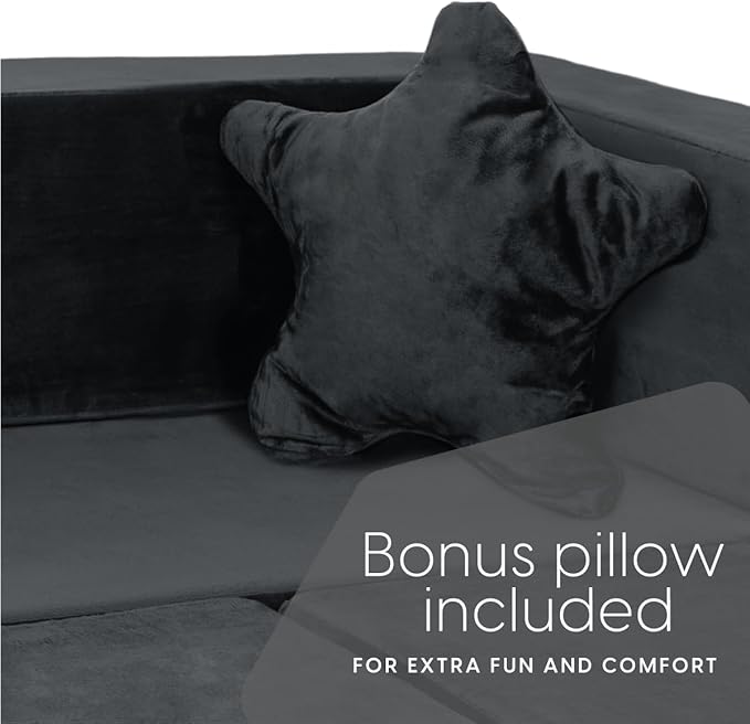 Milliard Kids Couch - Modular Kids Sofa for Toddler and Baby Playroom/Bedroom Furniture (Black) with Bonus Pillow