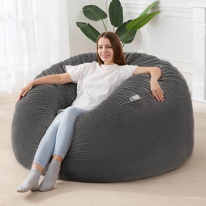 - Thick and Washable Cover: The cover of bean bag chair is washable for a further care. You can easily put it into washer to clean it like new. It is made of breathable premium corduroy with fine texture, soft and skin-friendly from touching. It is also anti-pilling and not easy to fade. Moreover its double stitched seams and premium zipper ensures for super durability & strength.