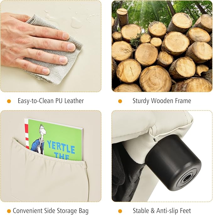 - Premium Material & Sturdy Construction: This kids lounge chair features PU leather surface, which is not only skin-friendly, but also waterproof and easy to clean with a damp cloth. In addition, supported by a solid wooden frame and 4 anti-slip feet, this upholstered recliner ensures excellent stability and can hold weights up to 110 lbs.