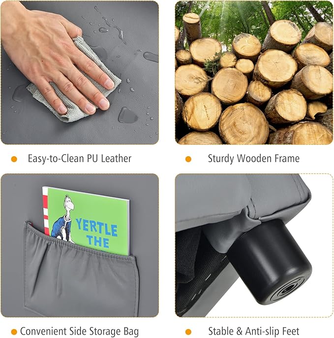 - Premium Material & Sturdy Construction: This kids lounge chair features PU leather surface, which is not only skin-friendly, but also waterproof and easy to clean with a damp cloth. In addition, supported by a solid wooden frame and 4 anti-slip feet, this upholstered recliner ensures excellent stability and can hold weights up to 110 lbs.