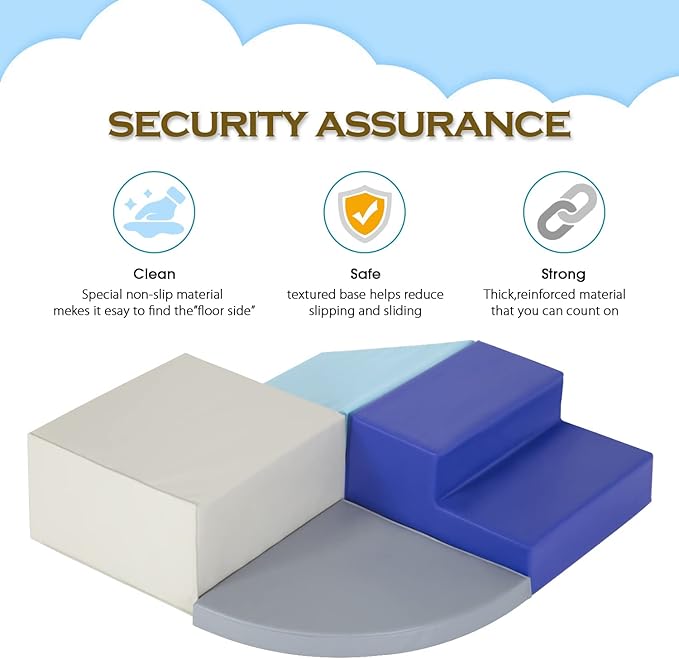 • EASY to MAINTAIN:The corner climber for babies is resistant to stains and wear, thanks to toddler climbing’s easy to clean vinyl surface, which can be wiped clean with a wet cloth. A simple cleaning can get a clean, soft play equipment.