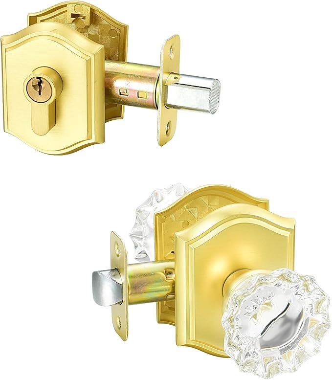 - Gorgeous crystal door knob and beautiful classic satin brass deadbolt, heavy duty and solid for last using