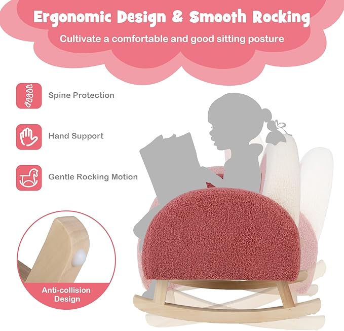 - Overwhelmingly Adorable Design: Covered with skin-friendly plush fabric, this kids rocking chair strikes you as curly and warm feeling with a comfortable touch. And the lovely rainbow pattern on the backrest makes the chair even more cute and inviting. It is hard for your 3 to 5 years old kids to not like this chair when they lay eyes on it.