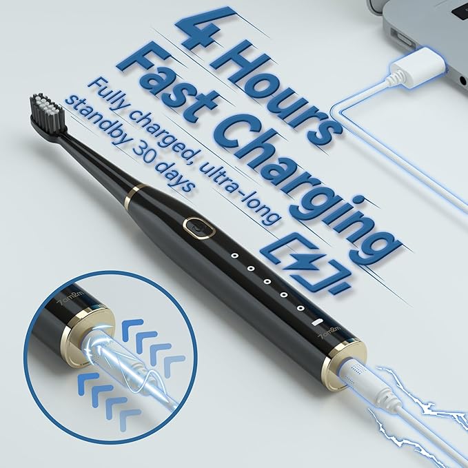 7AM2M Sonic Electric Toothbrush for Adults and Kids- High Power Rechargeable Toothbrushes with 8 Brush Heads,5 Adjustable Modes, Built-in 2-Minute Smart Timer,4 Hours Fast Charge for 30 Days(Black)