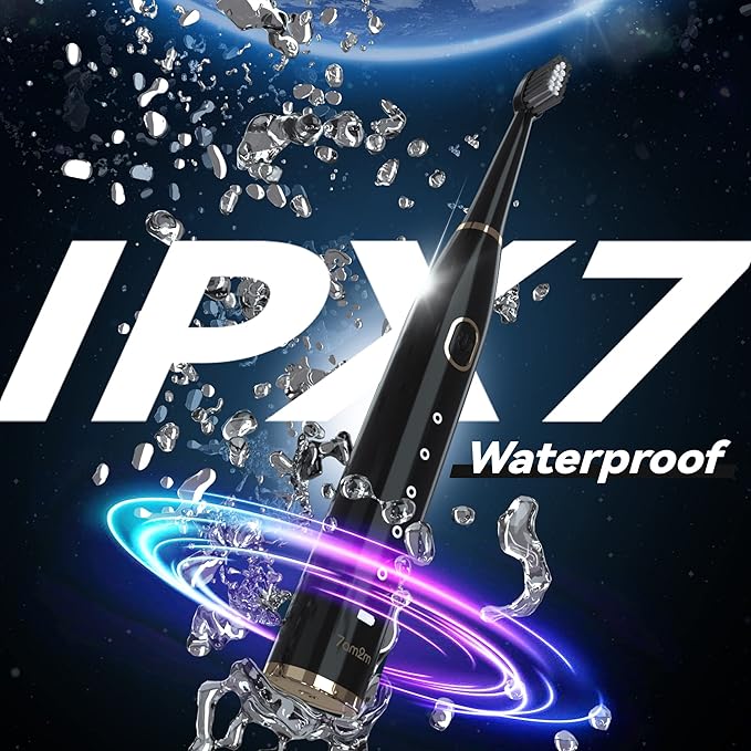 - IPX7 Waterproof and 2-Mins Timer Develop Healthy Tooth Brushing Habits: Built-in 2 minutes timer to ensure scientific brushing time, the sonic electric toothbrush pauses every 30 seconds to remind you to change the brushing area. And you can rinse it easily or use it in the shower with IPX7 waterproof.