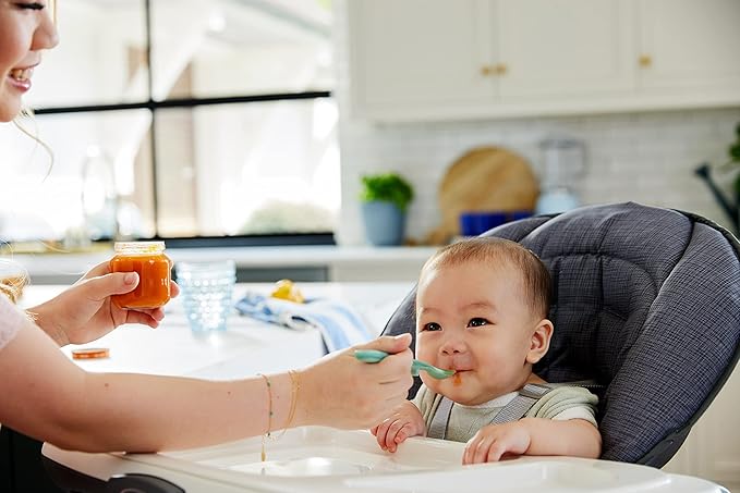 - Rest Easy support keeps the spoon tip off the table, so germs stay off the spoon and food stays off the table