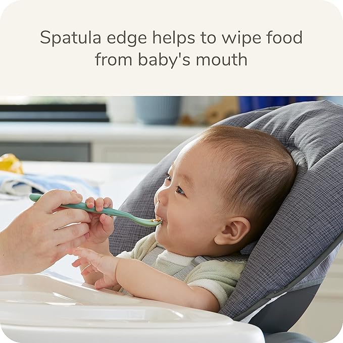 - Spatula edge helps to wipe food from baby's mouth