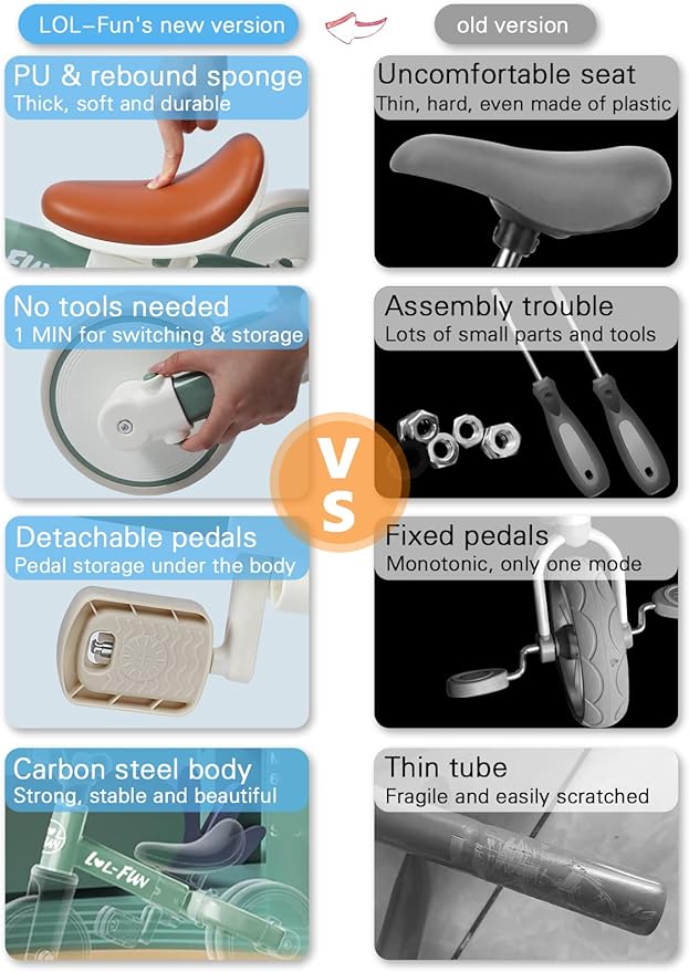 - 4 MODES: Newly mobile toddler wants to move in as many ways as possible. LOL-FUN tricycle for toddlers 1-3, which let kids scoot or roll around, is an ideal first birthday gift on the path to pedal bikes, helping boys girls develop strength, balance, and nerve while they learn how to steer and adjust their speed