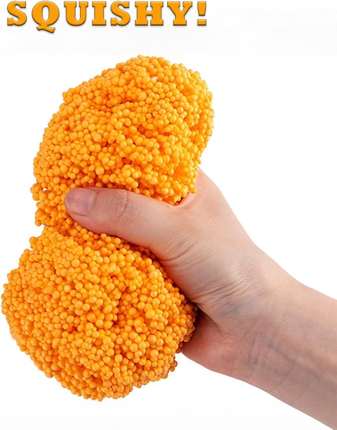 - Multi-colored Foam Clay: Update more bright 6 colors giant floam including blue, orange, yellow, green, and purple. Each pack weighs 0.3oz, enough for your kids to play for hours. Easy to shape, no need to bake. Store unused clay in a box or plastic bag.