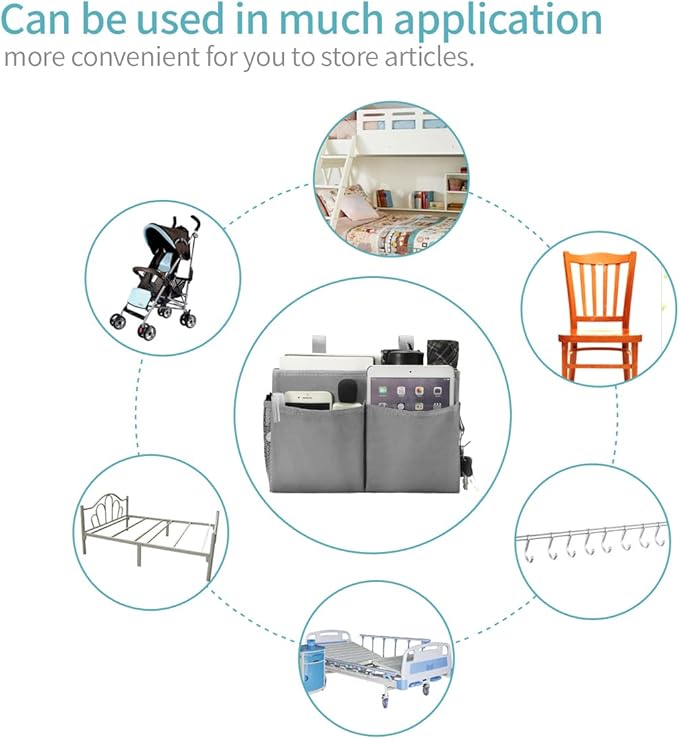 - BEDSIDE ORGANIZER HAVE MULTI PURPOSE: Perfect for students hang on the bedside to storage books,magazines,notebooks,pens,celphone and some snacks and drinks,also great for hang on the baby stroller or child bed to organizer the items that baby need