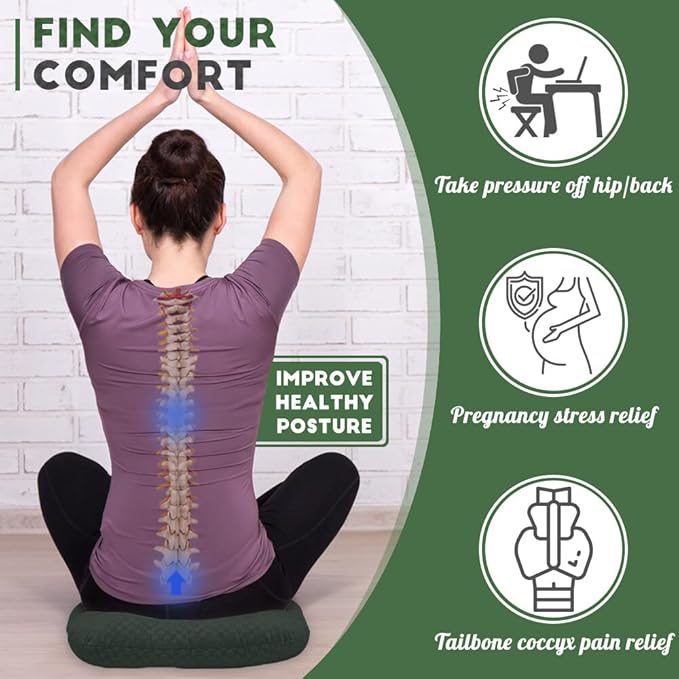 - Safe & Healthy Sitting - The seat pillow helps relieve pressure from your back or pelvic region while sitting for extended periods, also an ideal solution for people suffering from hemorrhoids, bed sores, broken tailbones, sciatica, coccyx pain, during pregnancies or post injuries.
