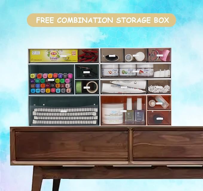 - Convenient Organizer: These Stackable desk organizers with multiple drawers of different sizes can be freely placed in arbitrary order, satisfy your individuation storage. The drawers are transparent, easy to identify different items to access.