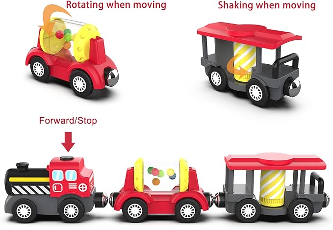 - Train toy includes a engine locomotive train along with two magnetic trains, is a necessary addition to wooden track, offering celebrating train set for toddlers over 3 years old and up.