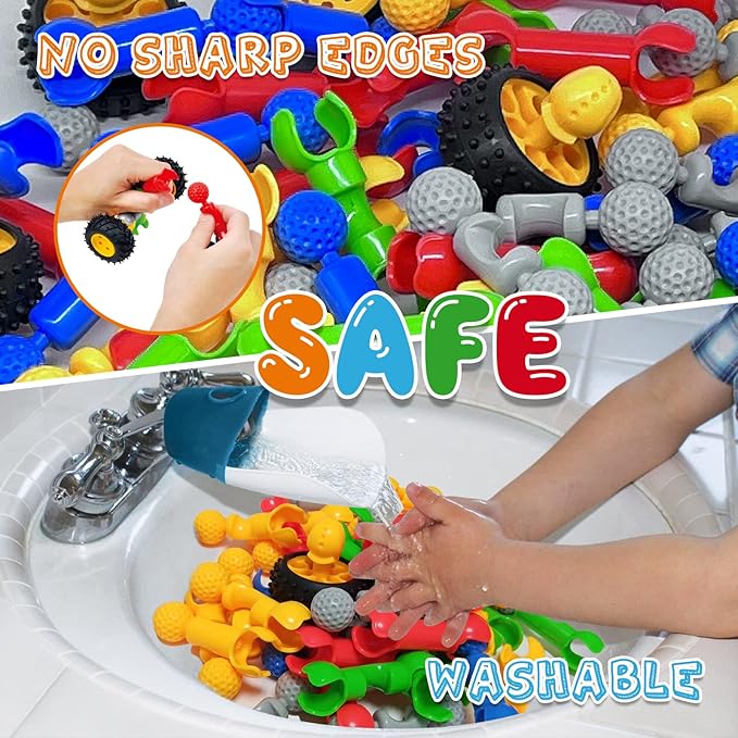 - MORE PIECES: The STEM building toys include 170 pieces of building blocks for boys and girls, 6 colors of building tools that can create 18+ design models: Gray *30, Yellow *30, Blue*30, Red*30, Green*30, and 20 removable wheels. It is a great toddler learning toy for 3 4 5 6 7 8 9 10 year old boys and girls.