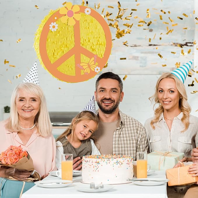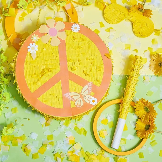 - Nice Combination: you will receive 1 hippie peace sign pinata, 1 blindfold, 1 pinata stick and 1 pack of confetti, such a complete and rich combination for you to use at the party according to your various preferences, impressing your guests with fun themes and party games