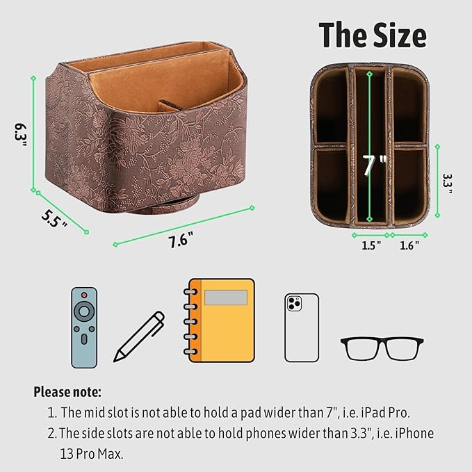 - Elegant & Practical: The remote control organizer features 4 small lots for media remotes, pens, eyeglasses, makeup brushes, and anything that fits, and a tablet pocket in the middle to store your desk supplies conveniently while keeping them easily accessible.