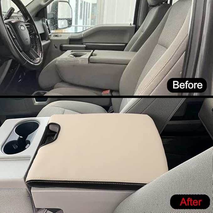 XITER 1PC Leather Center Console Armrest Cover Waterproof Protector Cover for 2015-2026 F150 2017-2026 F250 F350 F450 Super Duty with 40/20/40 Jump Seat(Beige+Black)
