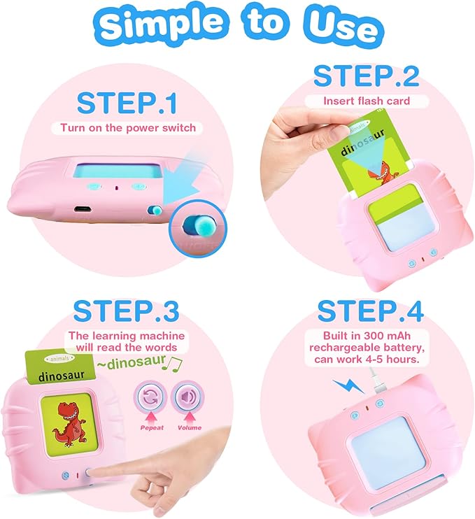 - 💕【Easy to Use 】Turn on the switch,put the card into the card reader’s slot,the card reader will pronounce the words in both English & Spanish.Press the repeat button to repeat the pronunciation and sound effect.