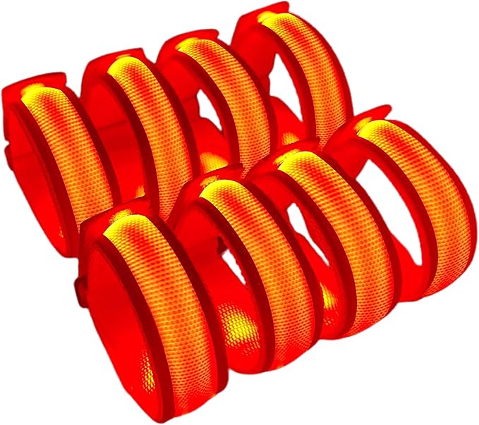 - 【Multi-Usages】:Nicely visible while walking, riding, running, or on a motorcycle at night. Secure enough that you don't have to worry about it flying off at higher rates of speed. Also perfect for dog collar when night walking. Great party supplies. Enough for you to share with your families and friends. Kids always love this light up bracelets.