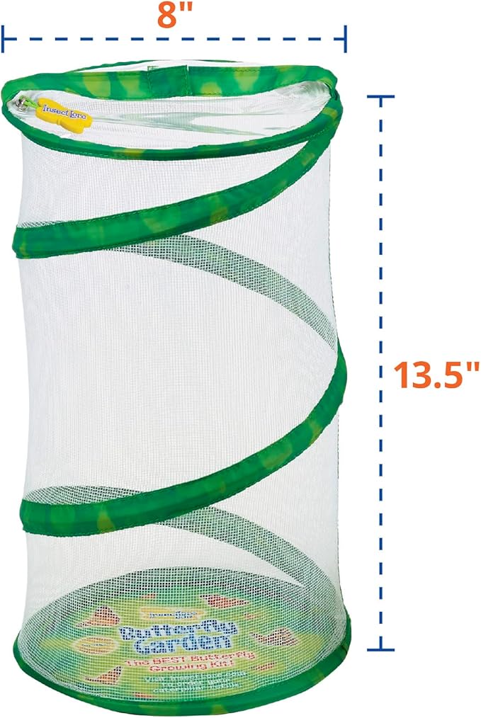 - USER-FRIENDLY & EDUCATIONAL | Our mini mesh habitat is designed for effortless use, collapsing flat for convenient storage and reassembly. The Chrysalis Holding Log makes the transfer of your lid to the habitat so easy that kids can help! No safety pins required. This live caterpillar kit provides a fun, comfortable, and engaging way to teach your little ones about nature!