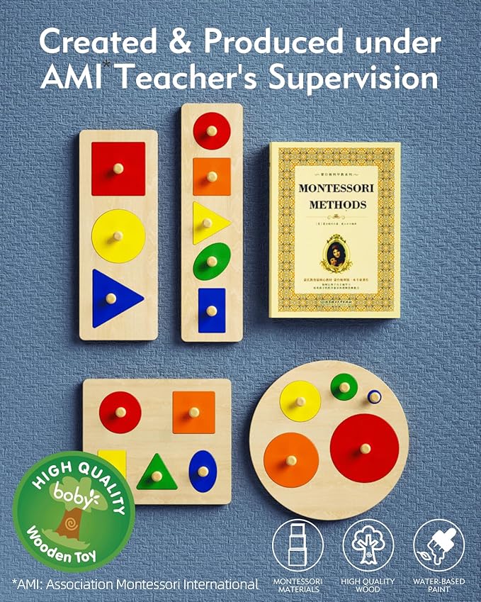 - Geometr Montessori Education Philosophy: These toys adhere to the Montessori education philosophy, focusing on children's autonomous exploration and comprehensive development, and cultivating independence and creativity.ic Shape Puzzle( 5 pieces)