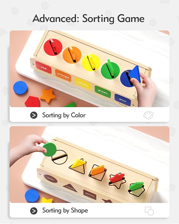 Boby Montessori Sorting Toys for Toddlers 1-3 Year Old, Wooden Color & Shape Sorter Box for Boy Girl Kids Birthday Gifts, Toddler Sensory Learning & Education Toys Age 1-2-3-4 Baby 12-18 Months