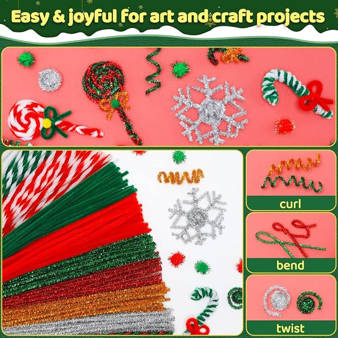 180 pcs Christmas Pipe Cleaners, Pipe Cleaners Craft, Arts and Crafts, Crafts, Craft Supplies, Art Supplies (Christmas Mixed)…
