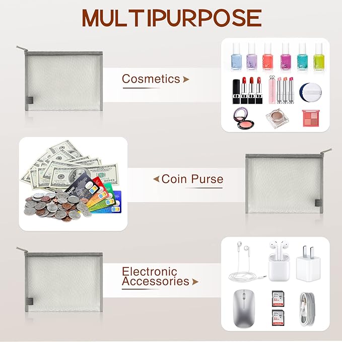 - 【Multifunctional organizer】The zipper mesh bags are perfect for organizing small things to keep them handy. You can also share them with your family or friends.